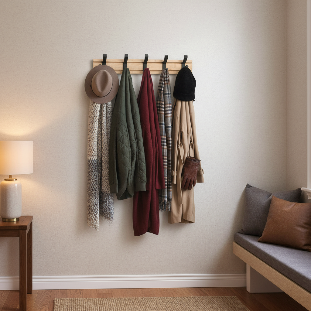 Bambus knagerække med rumaluminiumskroge – Nordisk stil til soveværelse eller stue, holdbar og nem at montere