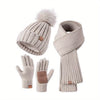 3-in-1 Winterset met Gebreide Muts, Sjaal en Touchscreen Handschoenen – Stijlvol en Warm voor Koude Dagen