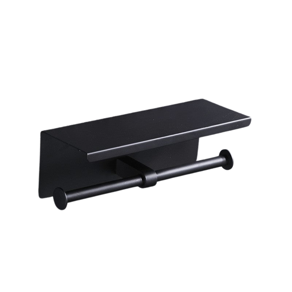 Zwarte Wc Rolhouder met Handig Plankje voor Extra Opslag